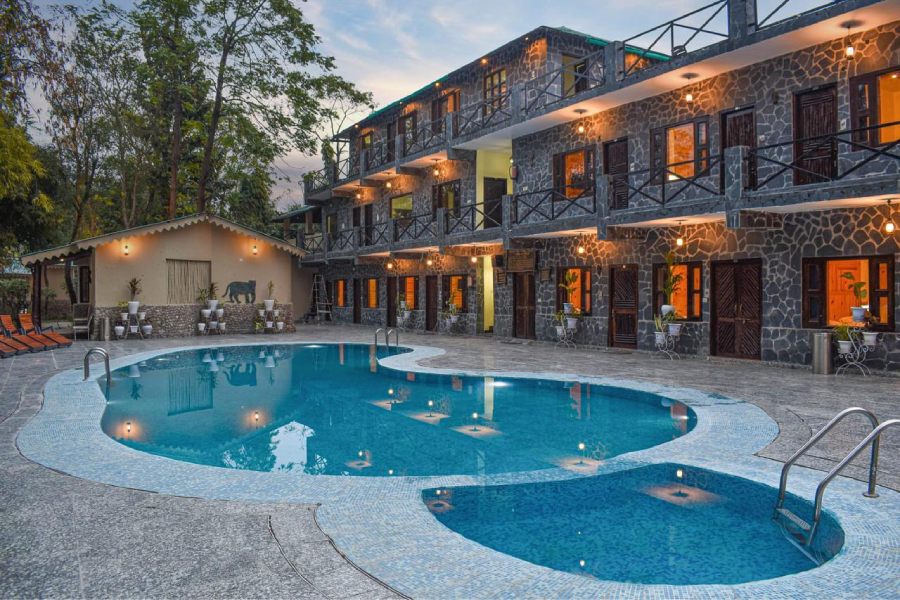 Spread in over 4.5 acres the resort has electrified fencing for safety and security and provides continues view of the adjacent Pebbled river bed on one side and core area of the Jim Corbett National Park on the other. The entire resort had been artistically designed keeping in tune the jungle theme and to make one feel as close to the nature and jungle as possible.